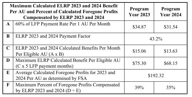 Note that the percentage of foregone profits provided by ELRP was 39% for 2023 and 35% for 2024.