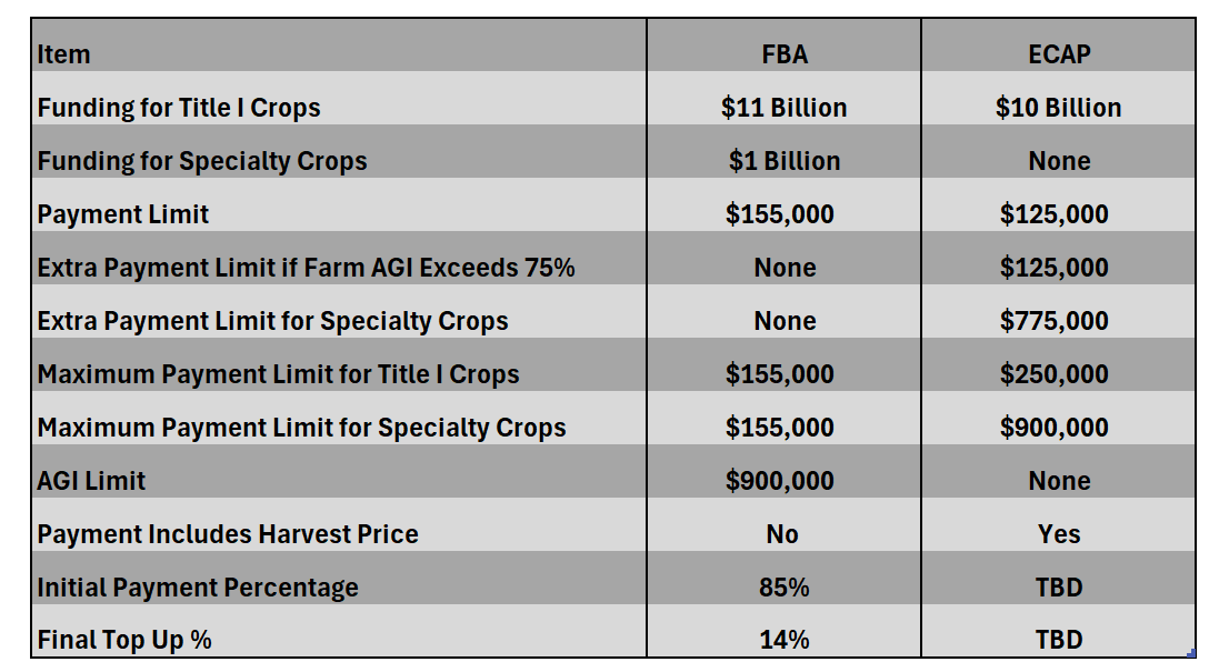 ECAP did not have an AGI limit while FBA imposes the normal $900,000 AGI limit and that likely applies to both the entity collecting the payment and its owners. This may prevent many farmers from collecting a full payment (or in some case any payment).