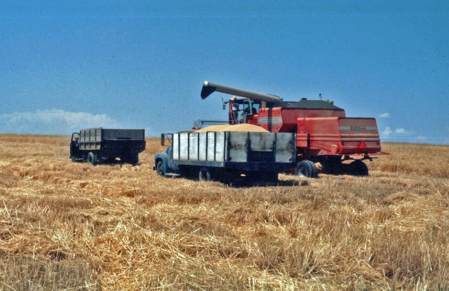 My dad later purchased a Massey Harris 92H combine (for hillside) that he used to combine wheat for at least one or two years. After that, they purchased a International 151 combine which I remember. I vaguely remember the MH 92H combine.